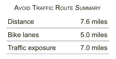 Include a summary of the route (distance, bike lane use, traffic exposure)